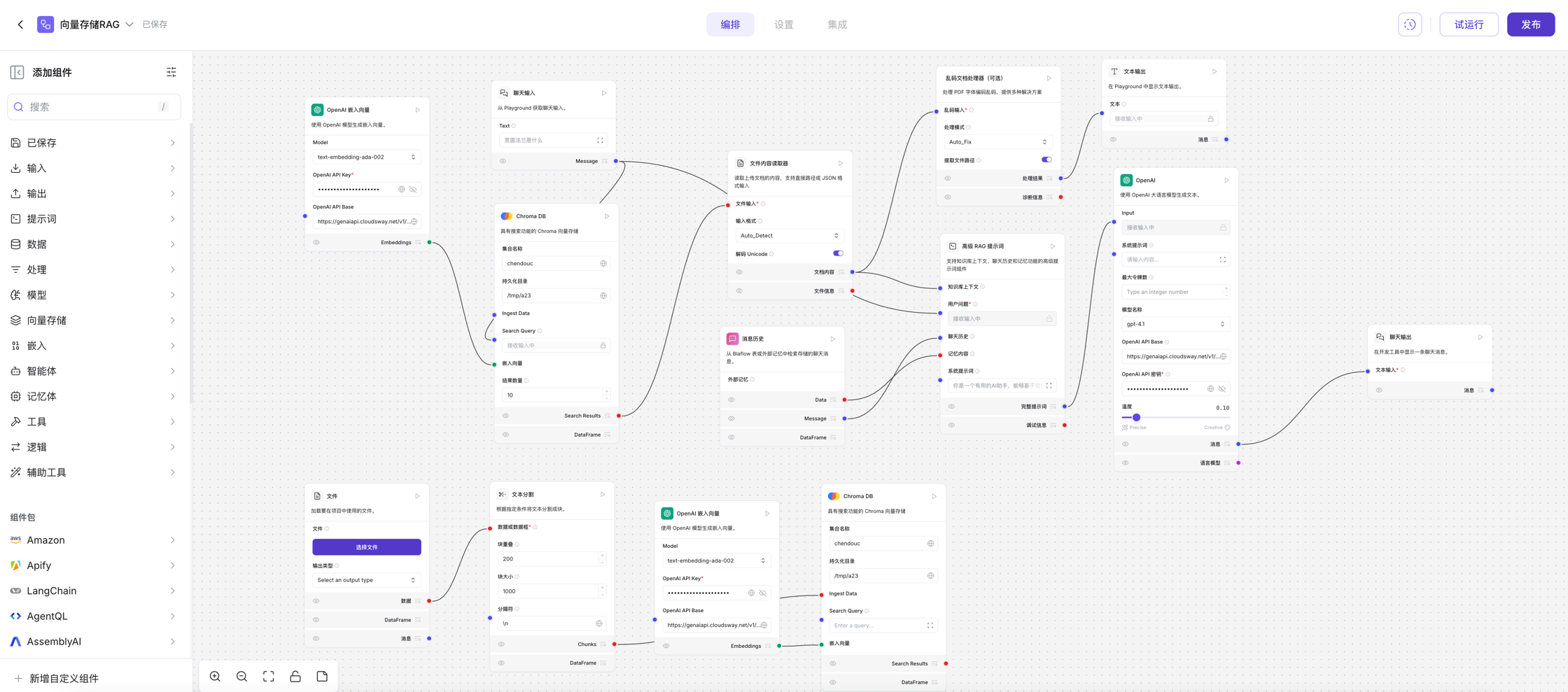 如果您使用了 Blaflow 的全局变量功能,RAG 应用程序流程组件已经配置了必要的凭据。